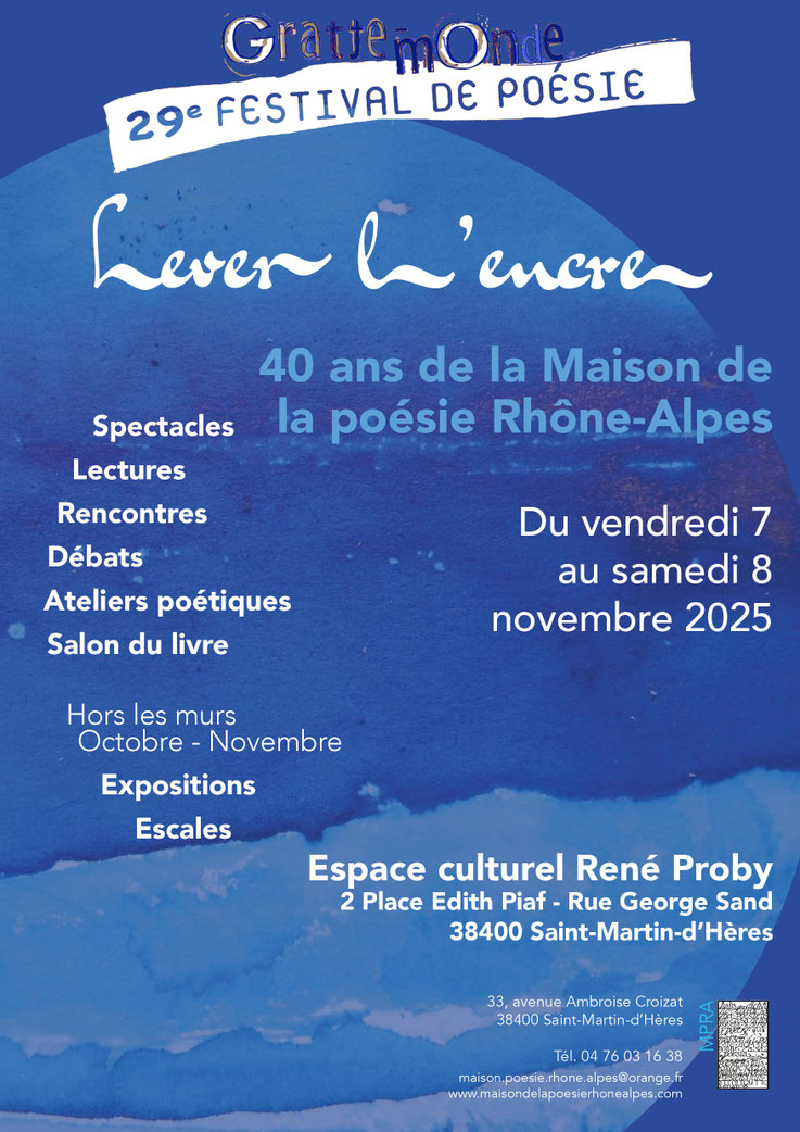 inscription obligatoire auprès de : maison.poesie.rhone.alpes @orange.fr Tél. 06 64 83 54 81