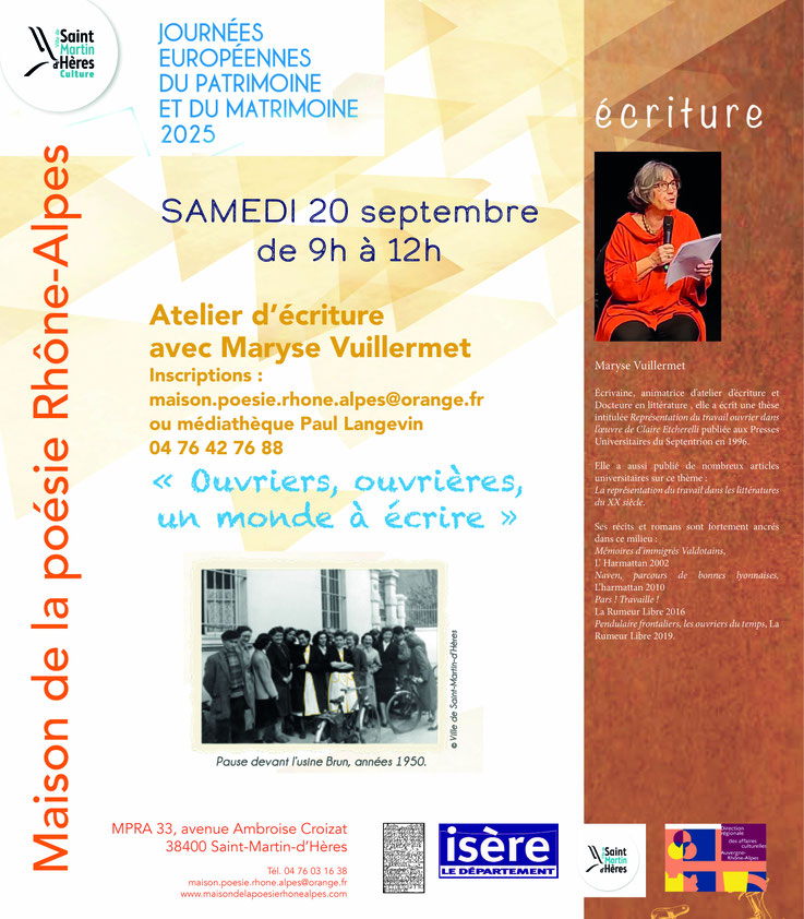 à la Maison de la poésie, 33 avenue Ambroise Croizat à St martin d'Hères